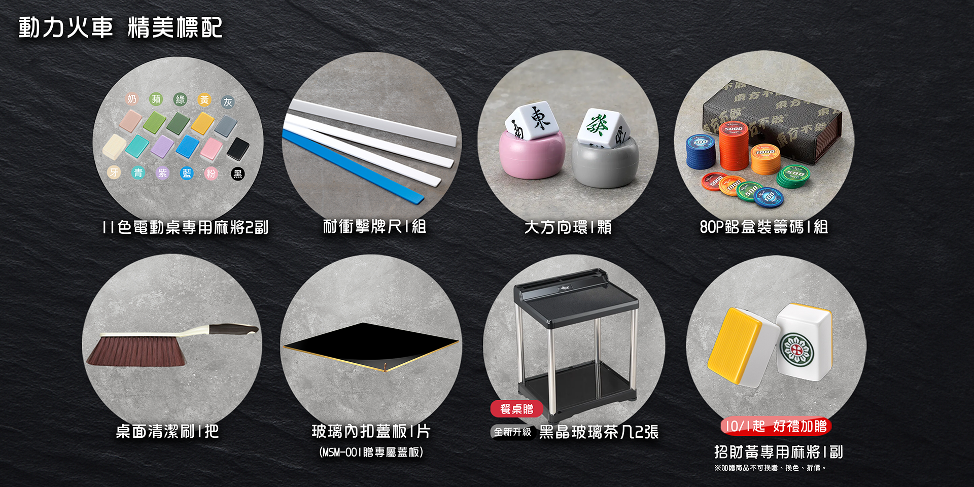 動力火車系列桌款於2025/10/01起購桌即加贈一副招財黃麻將送完為止!