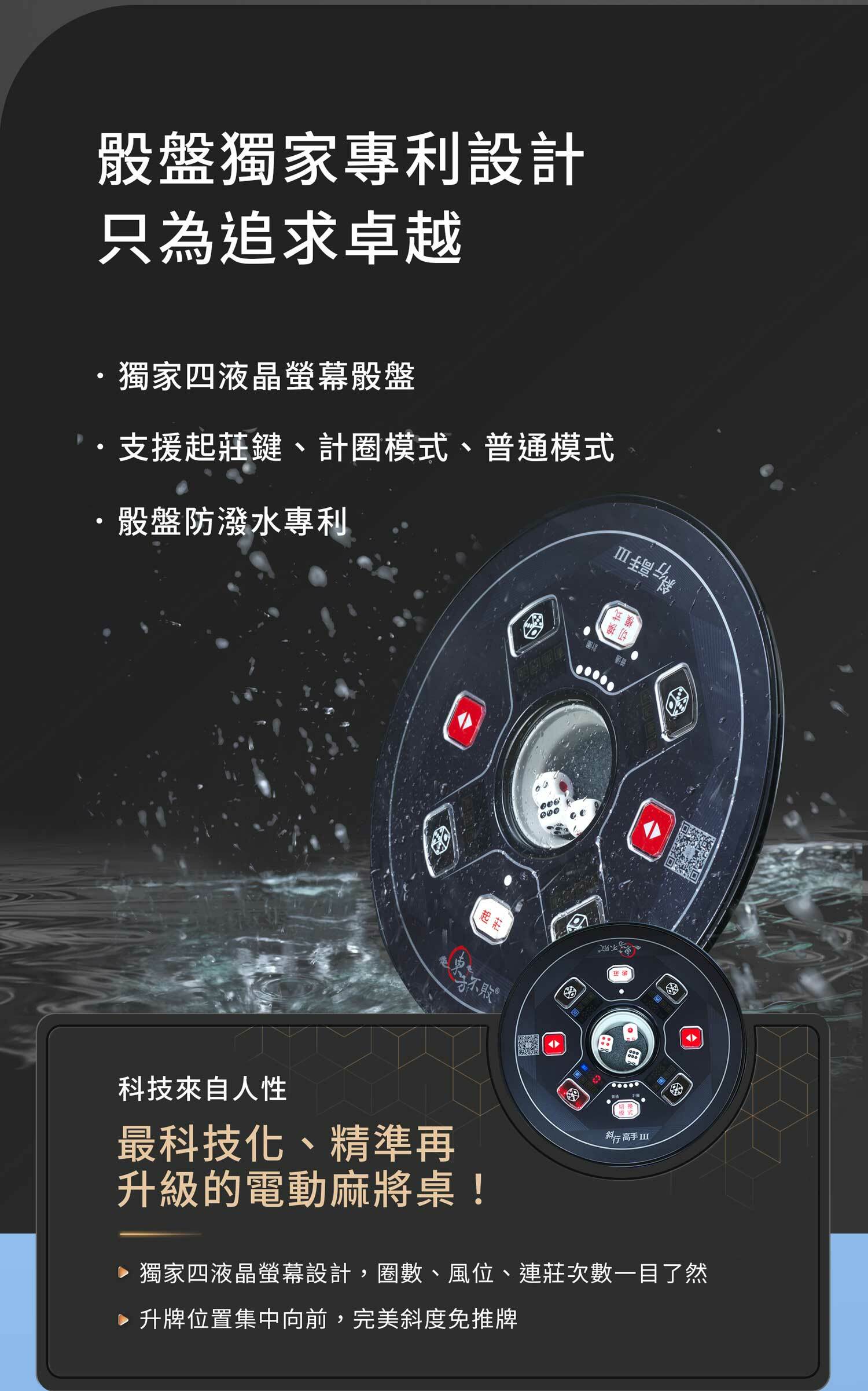 ✦業界獨家四液晶螢幕設計,無論圈數、風位、連莊次數都可一目了然