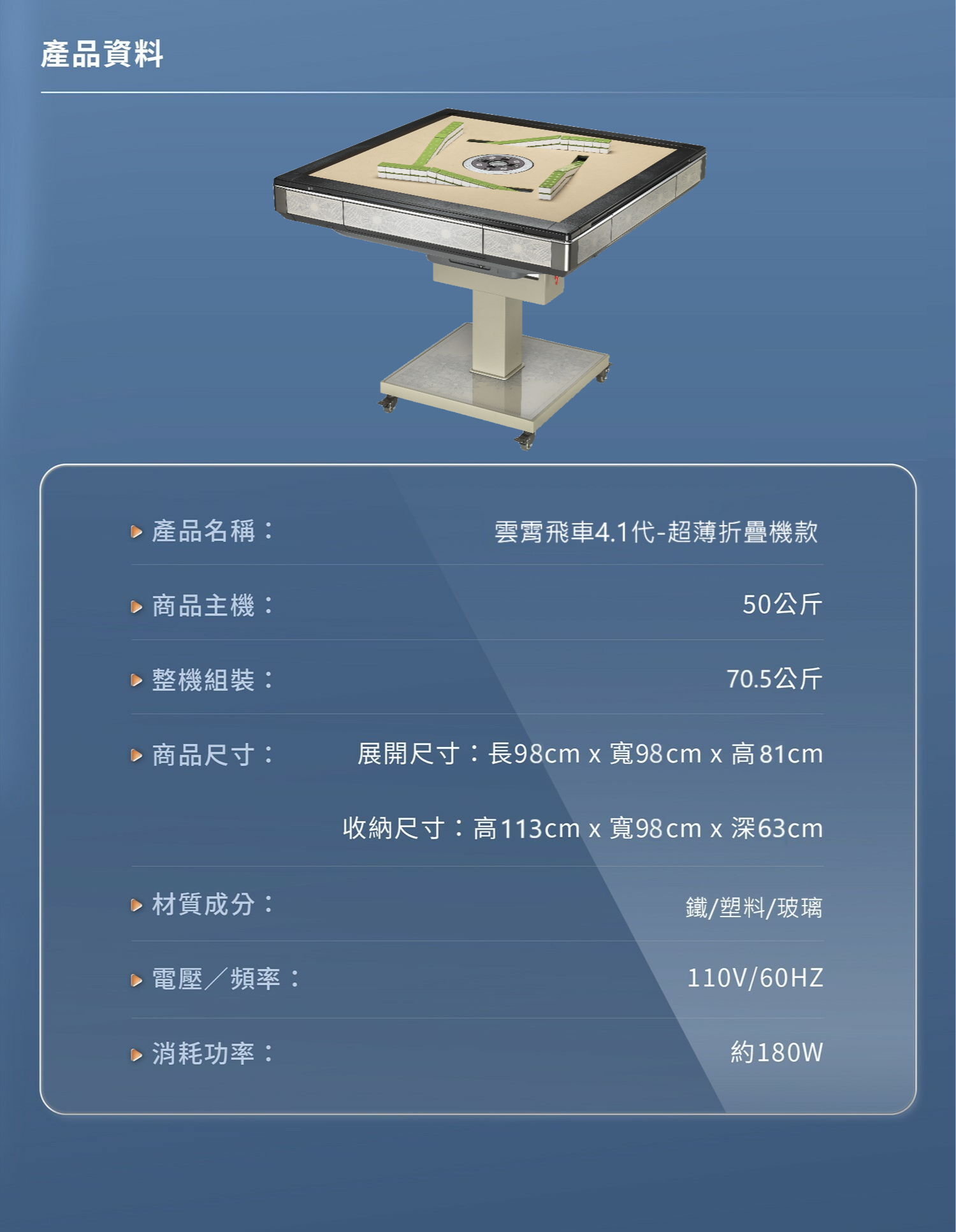 【36MM電動麻將桌】與手打麻將相異,其尺寸為36x26X19mm
