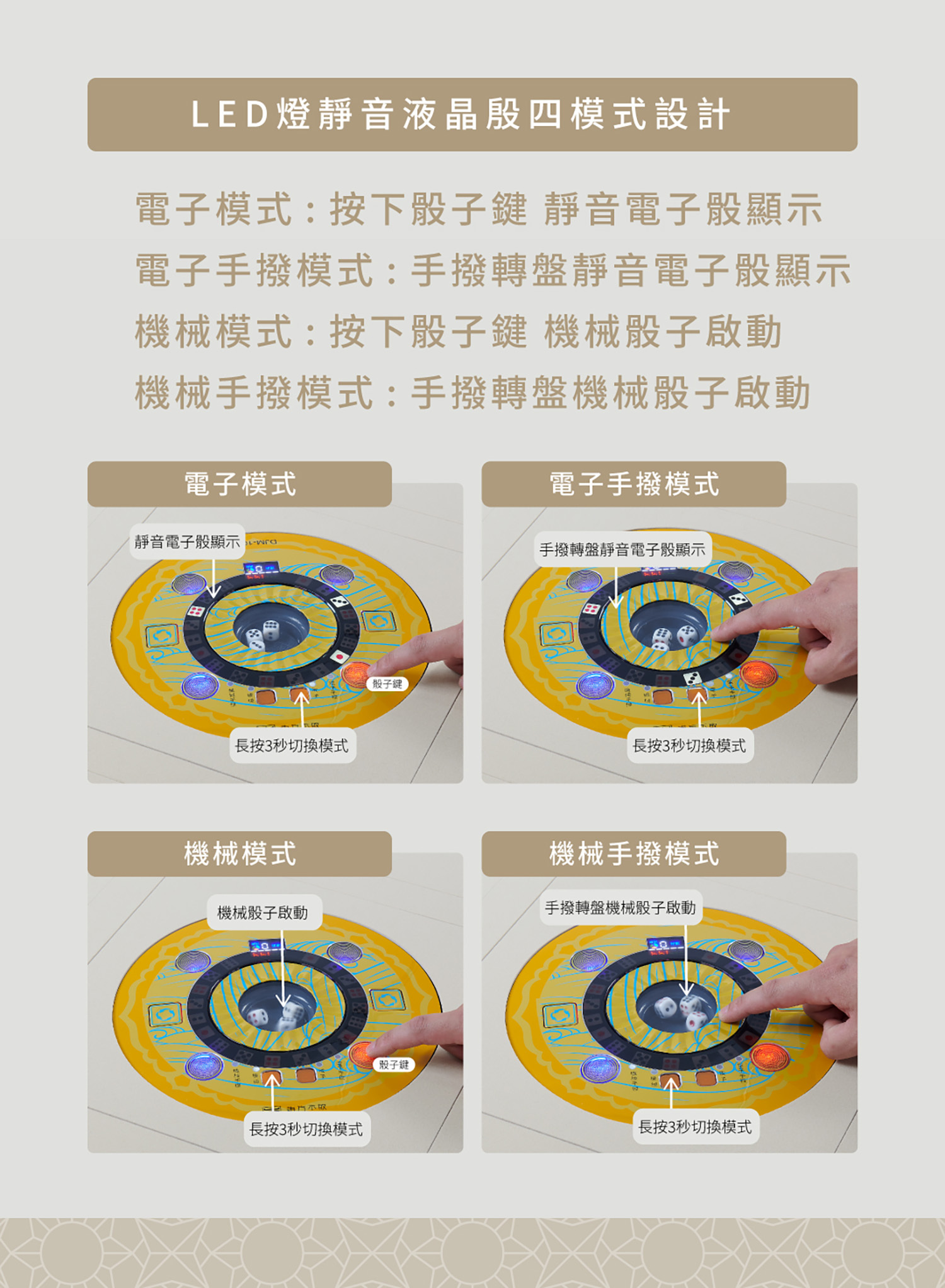✦LED液晶靜音骰盤,四種模式隨心切換