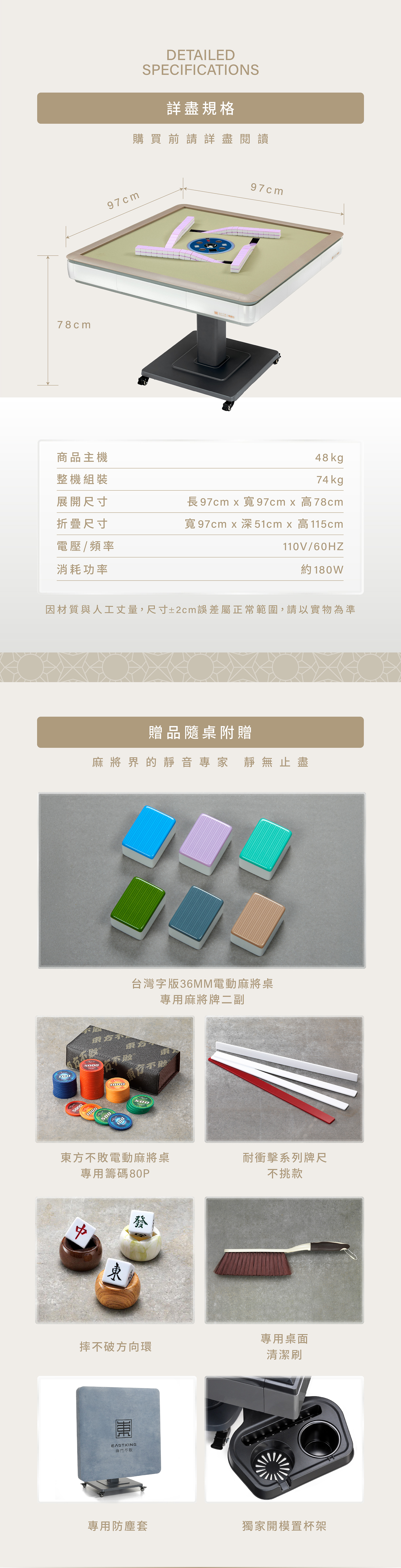 36電動桌專用麻將與手打麻將相異,其尺寸為36x26X19mm,