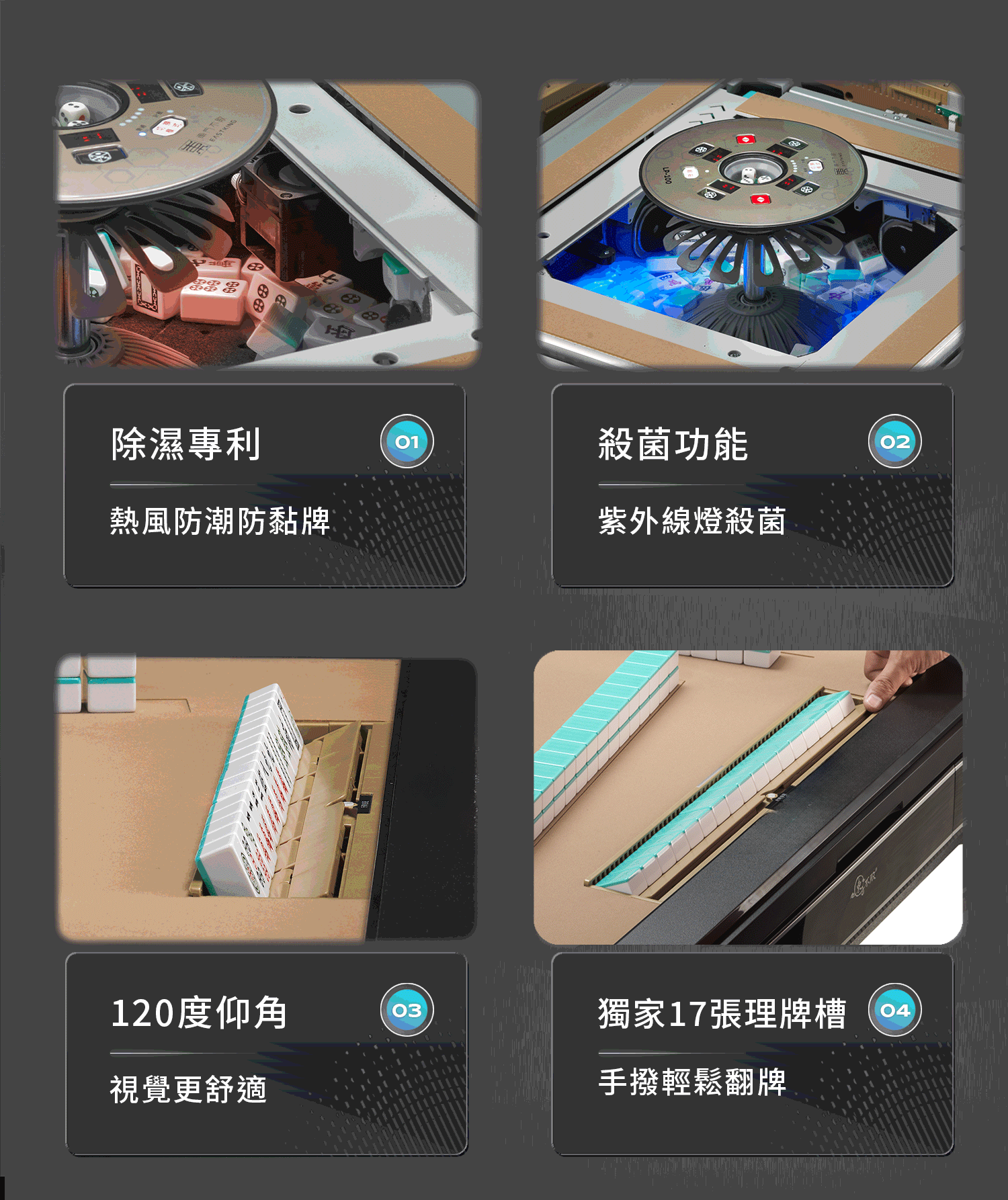 ✦業界獨家四液晶螢幕設計,無論圈數、風位、連莊次數都可一目了然