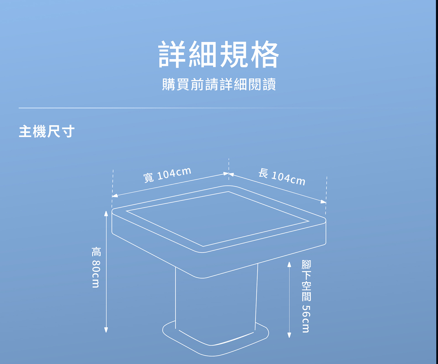 ✦桌子尺寸:104X104cm,含蓋板高度80cm