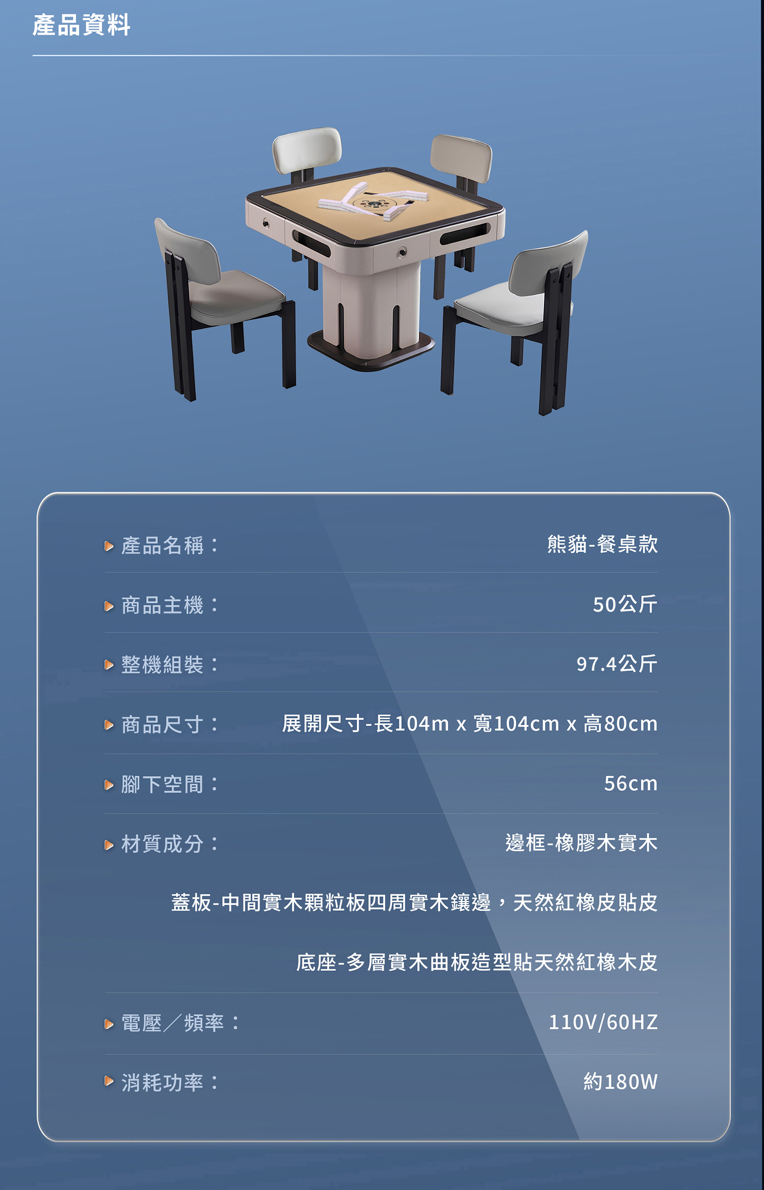 ✦桌子尺寸:104X104cm,含蓋板高度80cm