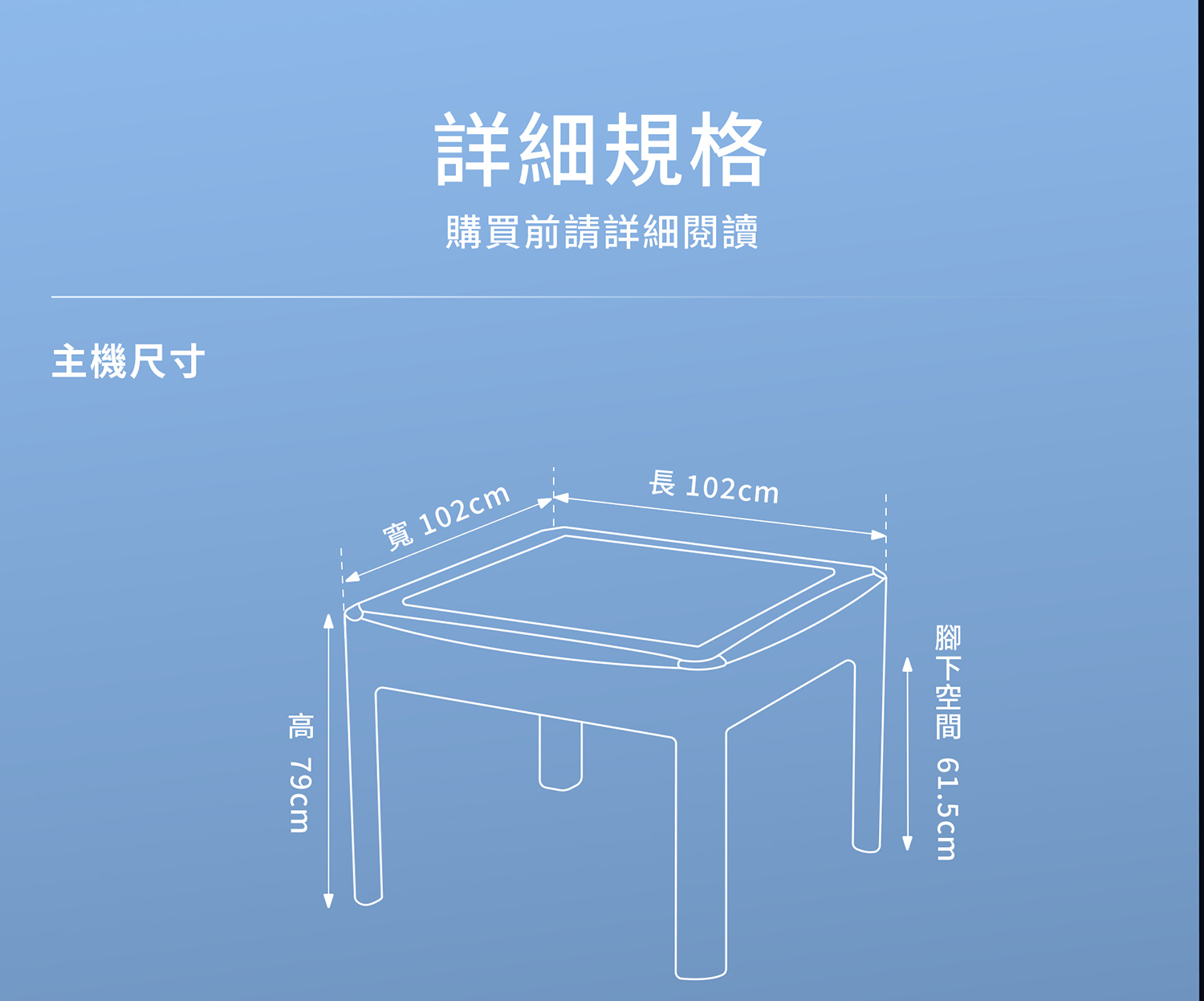 ✦桌子尺寸:102X102cm,含蓋板高度79cm